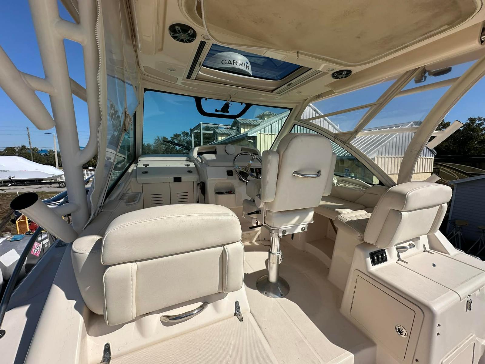 The Grady-White Express 330 is as practical as it is luxurious. Its intelligent design makes docking and maneuvering straightforward, even in busy marinas or tight spaces. The ample storage throughout the boat ensures that all your gear, supplies, and personal items are organized and easily accessible. This attention to detail enhances the overall boating experience, making every outing more enjoyable and stress-free.Fuel efficiency is another key advantage of this cruiser. The twin-engine setup is engineered for optimal performance, allowing you to cover more distance with less fuel. This means more time on the water and fewer stops at the fuel dock, maximizing your enjoyment and minimizing your operating costs. The Express 330’s durability and low-maintenance design further contribute to its appeal, offering peace of mind and long-term value.