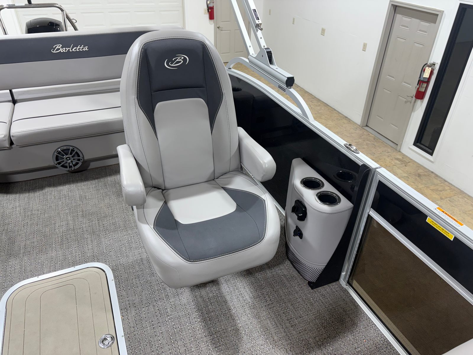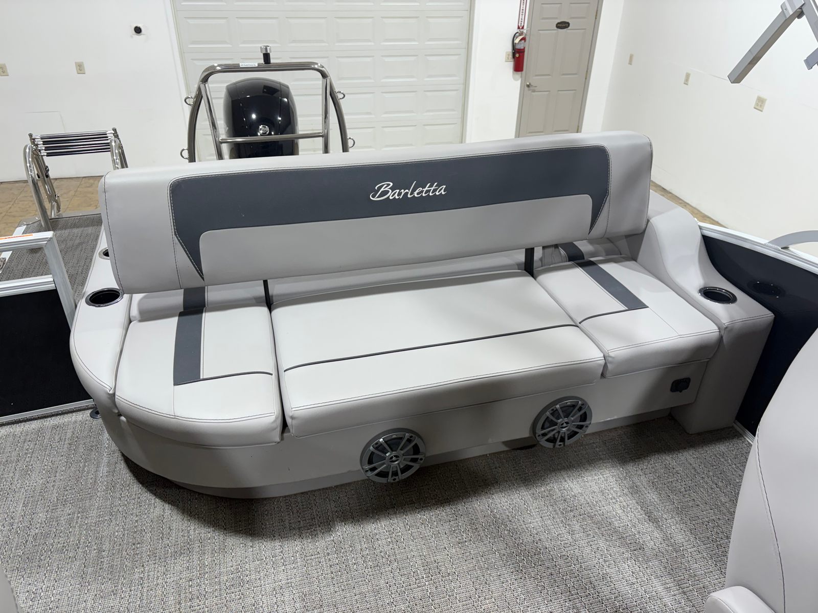 The Barletta A22UC is loaded with features designed to enhance your boating experience. The flooring is finished in elegant Amore Gray, providing a modern and easy-to-clean surface that complements the overall aesthetic. The furniture is upholstered in Tempest Gray, offering both comfort and style for all passengers. One of the standout features is the in-floor midship storage, which provides convenient space for stowing gear, water toys, and personal items, keeping the deck clutter-free and organized.The boat’s exterior is highlighted by the Railskin Color Aria in Black Diamond, giving it a sophisticated and eye-catching appearance. The Triple Toon Package Aria adds to the boat’s stability and performance, ensuring a smooth ride even in choppier waters. With the rig engine and standard prop, you can expect reliable propulsion and easy maneuverability, making docking and navigating tight spaces a breeze.