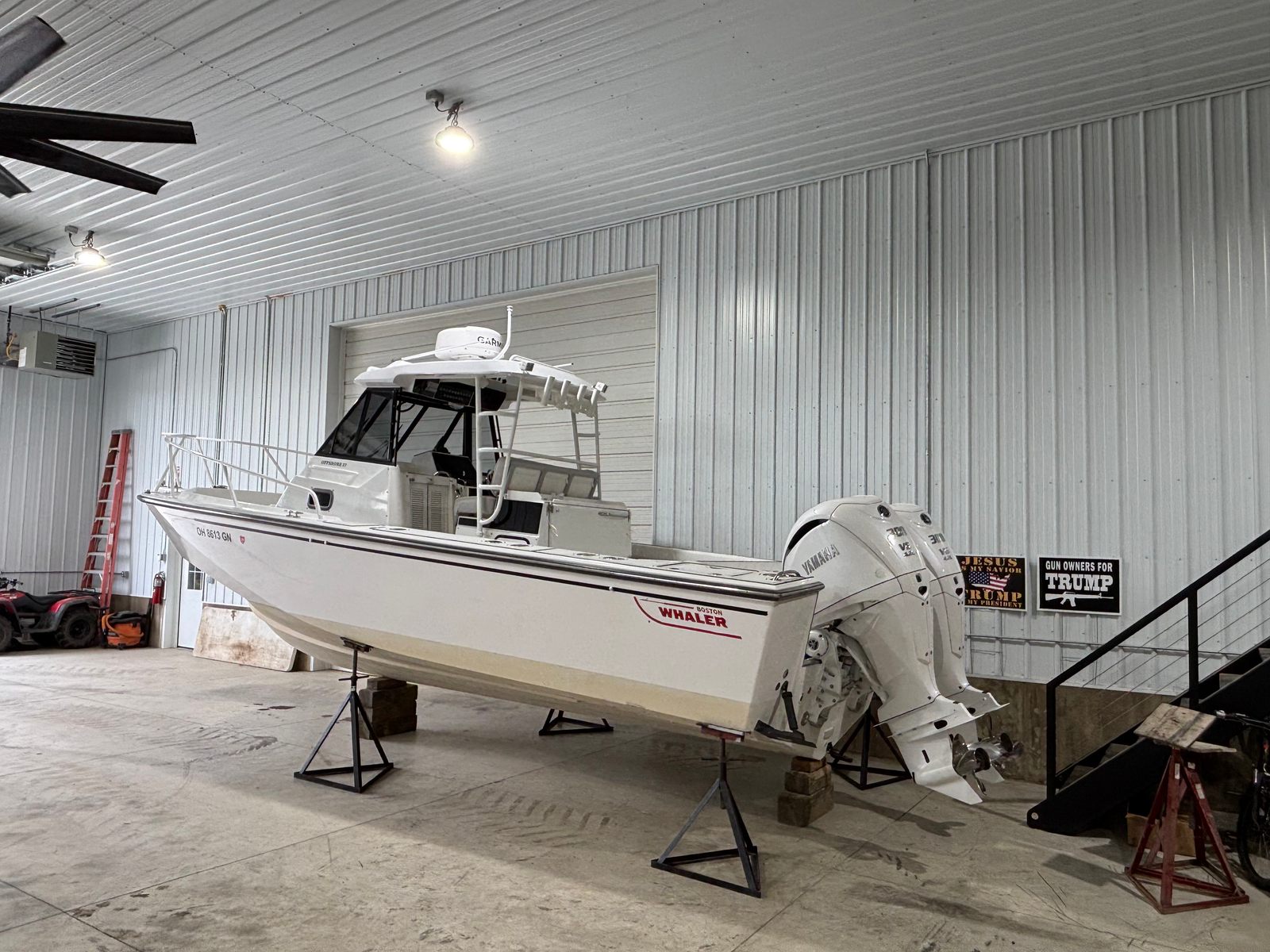 This Boston Whaler boat for sale is loaded with features designed to enhance your time on the water. The four-battery system ensures you have plenty of power for all your electronics and accessories, while the battery charger keeps everything ready for your next trip. The aft bench seat provides comfortable seating for guests, and the bow seating area is perfect for relaxing and enjoying the view. Anglers will appreciate the dedicated bait station, making it easy to prepare and store live bait for a successful day of fishing.The cockpit is equipped with coaming bolsters for added comfort during long days on the water, and the cockpit storage offers plenty of space to keep your gear organized and secure. The cockpit wet bar is a fantastic addition for entertaining, allowing you to serve refreshments and snacks with ease. Navigational aids such as the compass and depth sounder help you stay on course and monitor water conditions, adding an extra layer of safety and convenience to your boating experience.