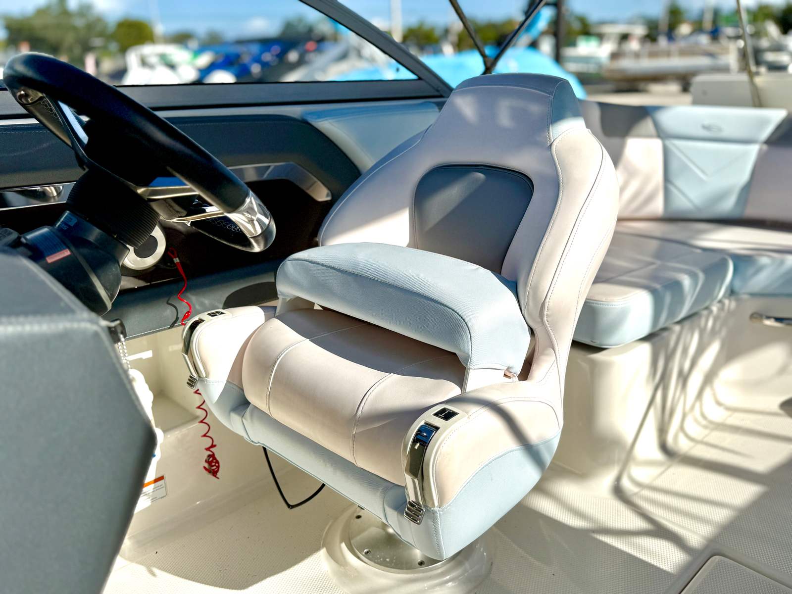 The Chaparral 230 Suncoast shines in a variety of scenarios, making it the ultimate choice for boaters who want it all. Imagine spending a sunny afternoon with your family, cruising to your favorite swimming spot and enjoying a leisurely lunch on the water. Or gather your friends for an action-packed day of tubing and wakeboarding, followed by a relaxing sunset cruise. This bowrider is also perfect for couples seeking a stylish and comfortable way to explore new waterways or escape for a weekend getaway.With its spacious layout, powerful engine, and user-friendly features, the 230 Suncoast is equally at home on calm lakes, bustling rivers, or coastal bays. Its versatility and reliability make it an excellent choice for both seasoned boaters and those new to the boating lifestyle.