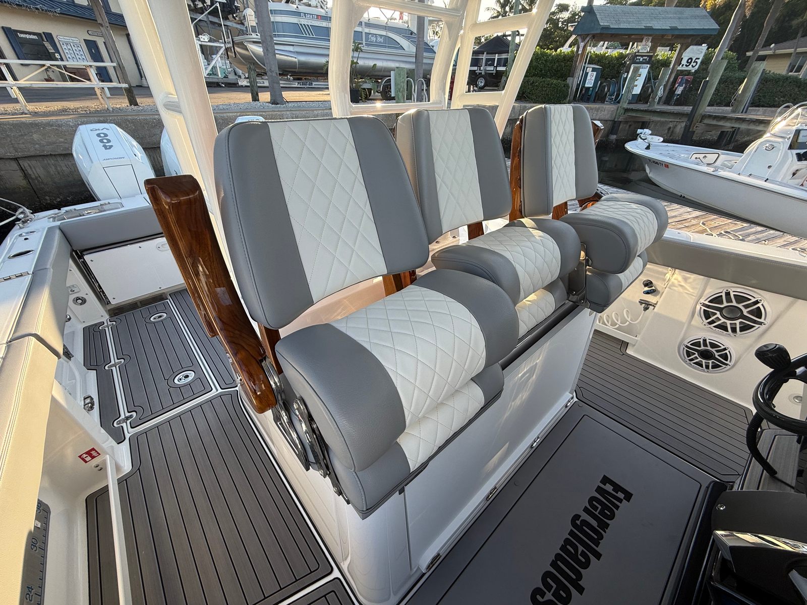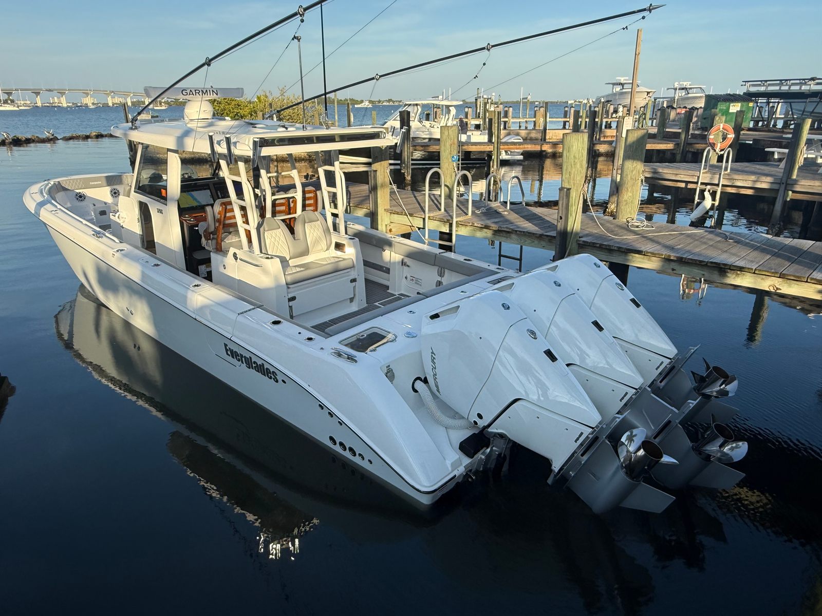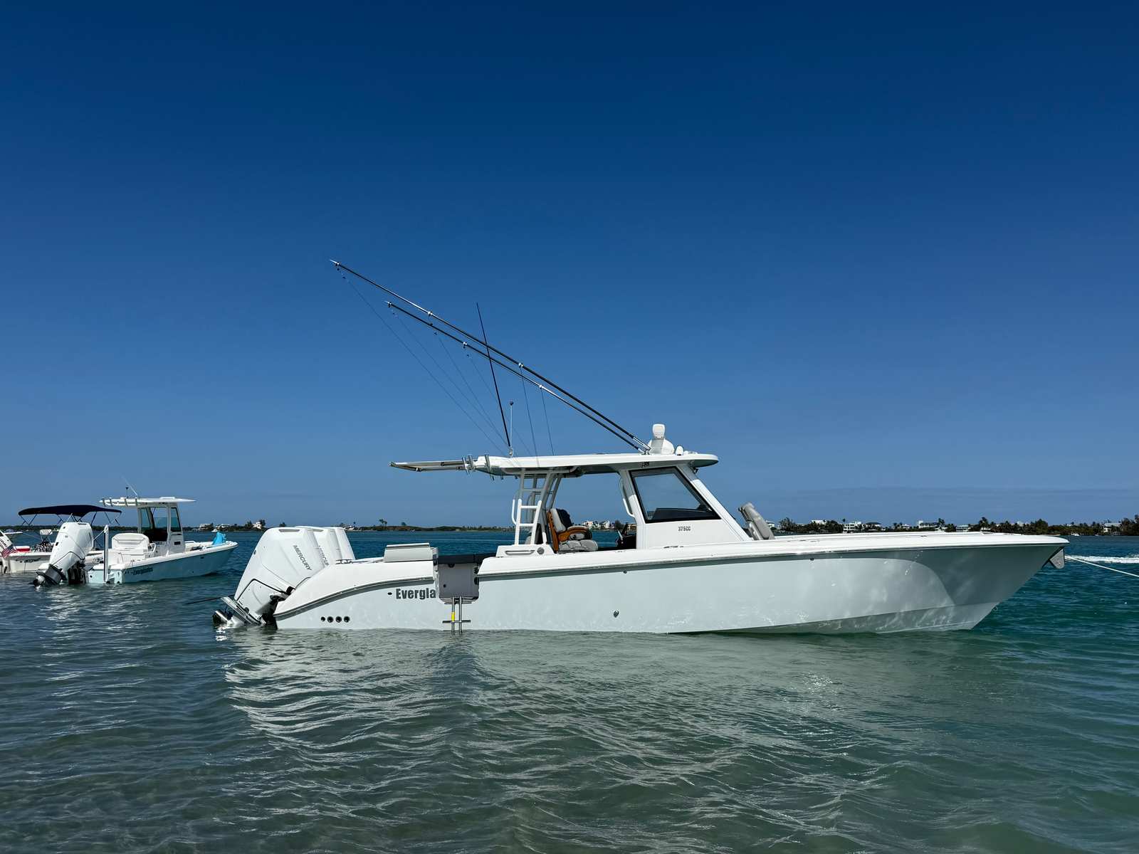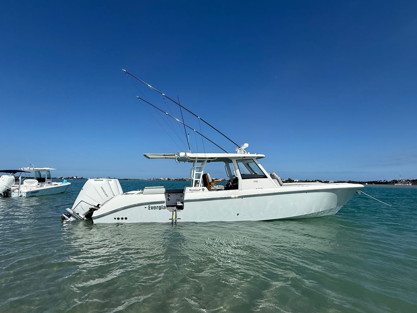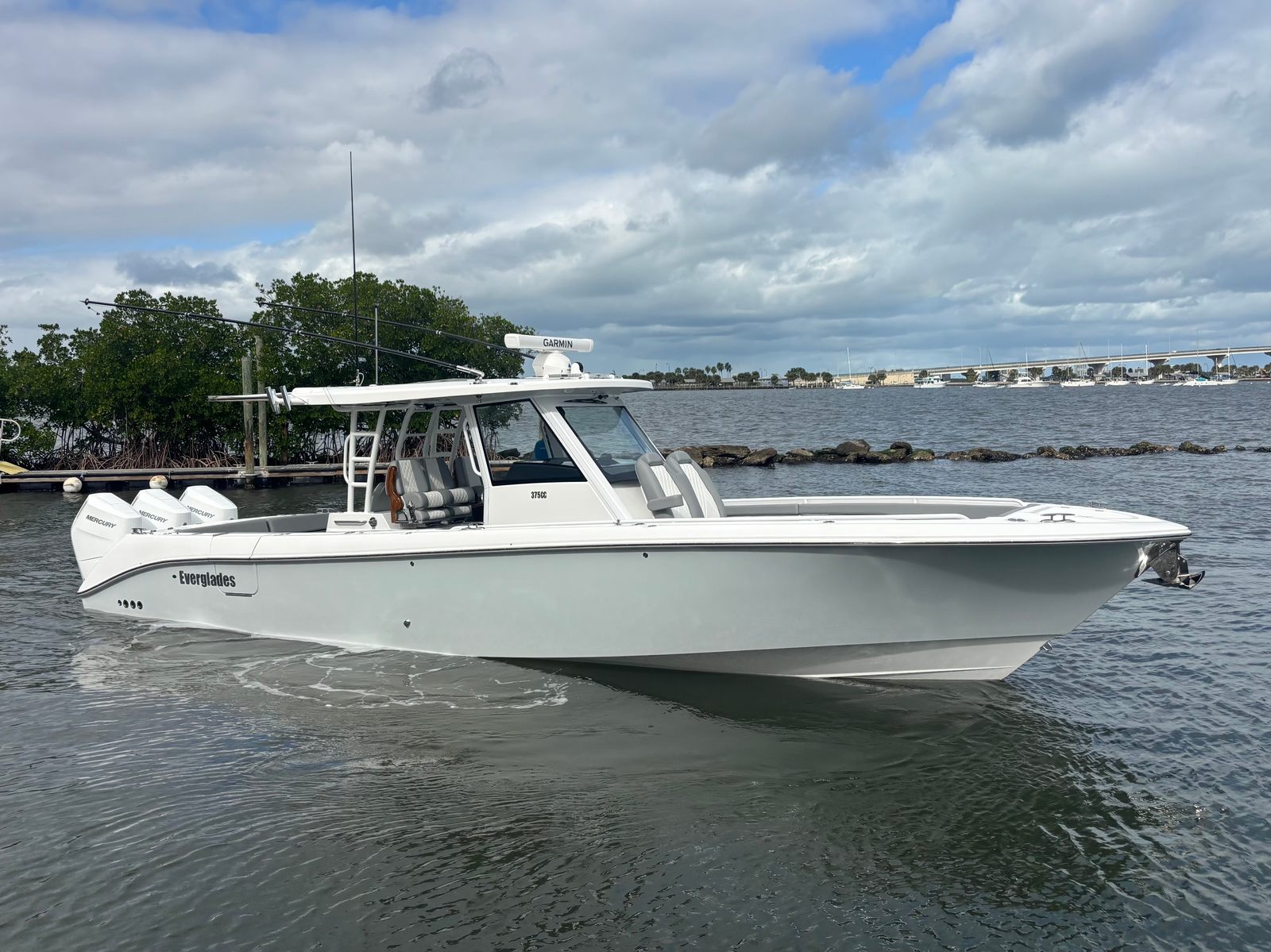** PRICE REDUCED, MIAMI BOAT SHOW SPECIAL ** | Triple Mercury 400 V10 | (78) Current Hours | Everglades (3) Year Components Warranty Expires July, 2028 | Mercury Engine Extended Warranties Expire June, 2032 | Hull Color - Whisper Gray | Interior Color - Flint Gray | Teak Trim Package | Release Marine | Teak Ladder Back Helm Seats | Dual Garmin 9222 Chart Plotters | Garmin Fantom 4' Open Array Radar | Garmin 315 VHF | AIS 800 Receiver | GXM 54 Sirius Weather Receiver | B175 High & Low Transducers | Sionyx Night Vision Camera | Canvas Package - Silver Color | Carbon Fiber Steering Wheel | Engine Flush System | DC Powered Cabin & Helm AC | DC Powered Chiller Plate - Mezzanine Box | JL Speakers M6 LED | Triple Lower Profile Light Bars | Retractable Makefast Awning | Seakeeper 3 Stabilizer | Upgraded Zip Wake PRO 400 E Series | Under Gunnel (4) Electric Reel Power Ports | Underwater LED Lights | SeaDek Flooring | (2) Gemlux Lockable Swival Rod Holders | Gemulx Carbon Fiber 18' Outriggers| SALES CONTACT - CHRIS FRAMBES 772.528.0840