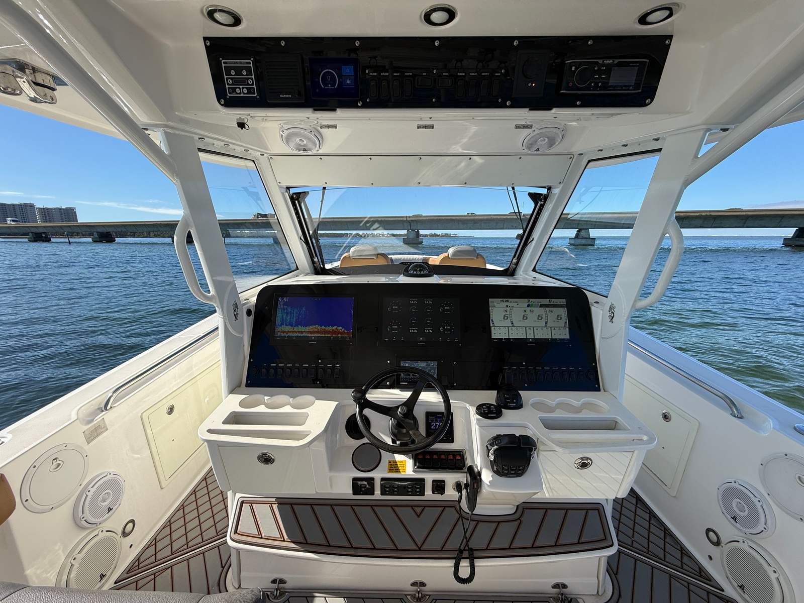 Power and performance are at the heart of the Everglades 435 CC. Equipped with four high-performance engines delivering a combined 1,400 horsepower, this center console boat is built to conquer the open seas with confidence and speed. The quad-engine setup provides exceptional acceleration, smooth cruising, and impressive top-end speed, making it ideal for long offshore runs, tournament fishing, or simply enjoying a thrilling ride with friends and family. With 500 engine hours, these engines have been maintained to ensure reliable performance and longevity. The advanced hull design ensures a dry, stable, and comfortable ride, even in challenging conditions, so you can focus on the adventure ahead.