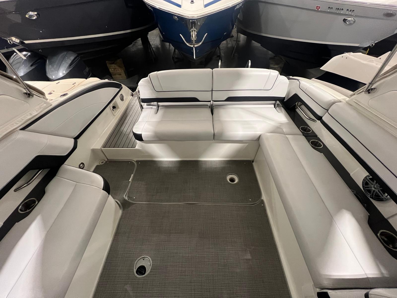 Owning the Formula 330 CBR cruiser means embracing a lifestyle of fun, relaxation, and adventure. The spacious layout is perfect for entertaining friends and family, offering ample seating and room to move about. The comfortable cabin and climate control features ensure everyone stays cozy, whether you’re escaping the summer heat or enjoying a crisp autumn evening on the water. The premium sea grass flooring in the cockpit adds both style and practicality, making cleanup after a day of fun effortless. Socializing is a breeze on this cruiser boat for sale, with plenty of space for dining, lounging, and enjoying the company of loved ones. The bimini top and camper enclosure provide flexible options for sun and shade, so you can tailor your experience to suit the weather and your preferences. Whether you’re hosting a sunset cocktail party or embarking on a weekend adventure, the Formula 330 CBR delivers the perfect setting for memorable moments.
