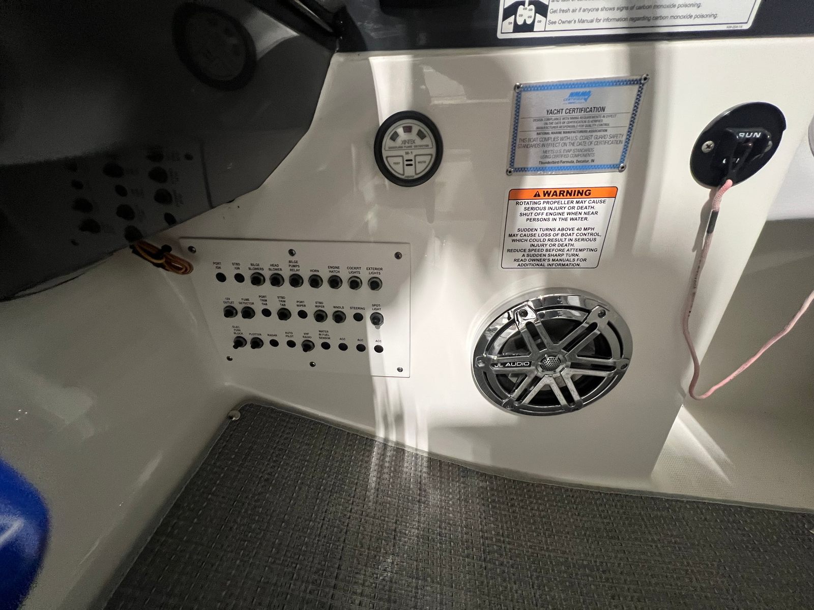 The 2016 Formula 330 CBR is packed with special features designed to enhance your boating experience. Notably, the boat’s age is listed as 2026, reflecting its modern appeal and up-to-date amenities. The battery charger ensures your onboard electronics remain powered throughout your adventures, while the bimini top provides essential shade and protection from the sun. The bottom paint helps maintain the hull’s integrity and appearance, making maintenance a breeze. For added convenience and comfort, the bow cover and cockpit cover offer protection from the elements, keeping your boat in pristine condition. The camper enclosure extends your cruising season, allowing you to enjoy the water even in cooler weather. Inside, the cabin AC/heat system creates a comfortable environment regardless of the temperature outside, while the cockpit flooring features luxurious sea grass for a touch of elegance and easy cleaning. The black canvas color adds a sophisticated touch, complementing the boat’s overall aesthetic.