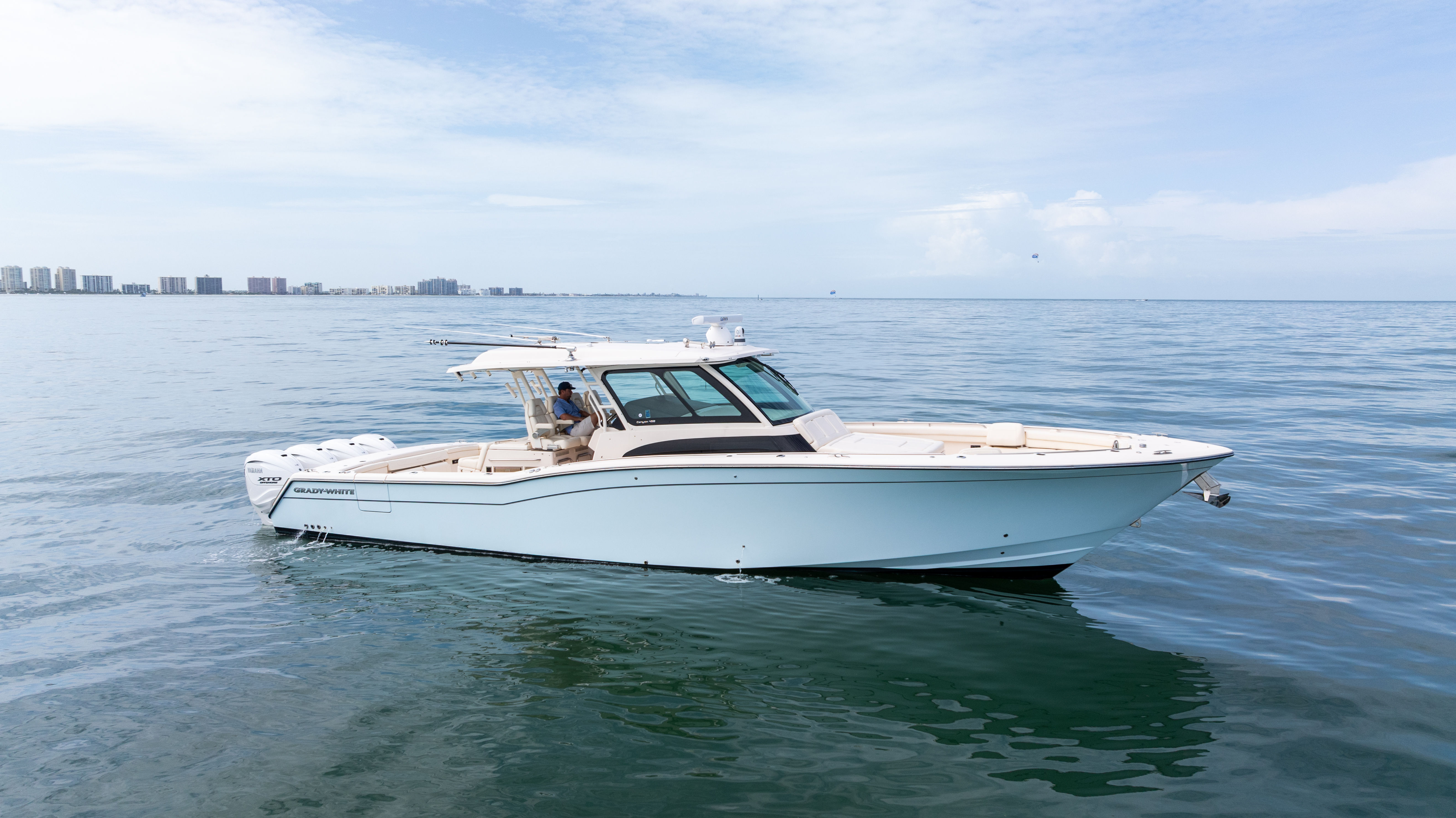 Experience the pinnacle of offshore sportfishing and cruising with this pre-owned 2023 Grady-White Canyon 456, a flagship center console loaded with power, comfort, and cutting-edge technology. Powered by quad Yamaha 450hp outboards, this beast delivers breathtaking performance with confidence-inspiring control, thanks to Yamaha’s integrated joystick steering system and bow thruster.