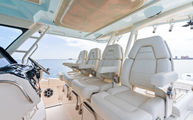 Expansive cockpit with a full tackle station, grill, sink, and refrigerator