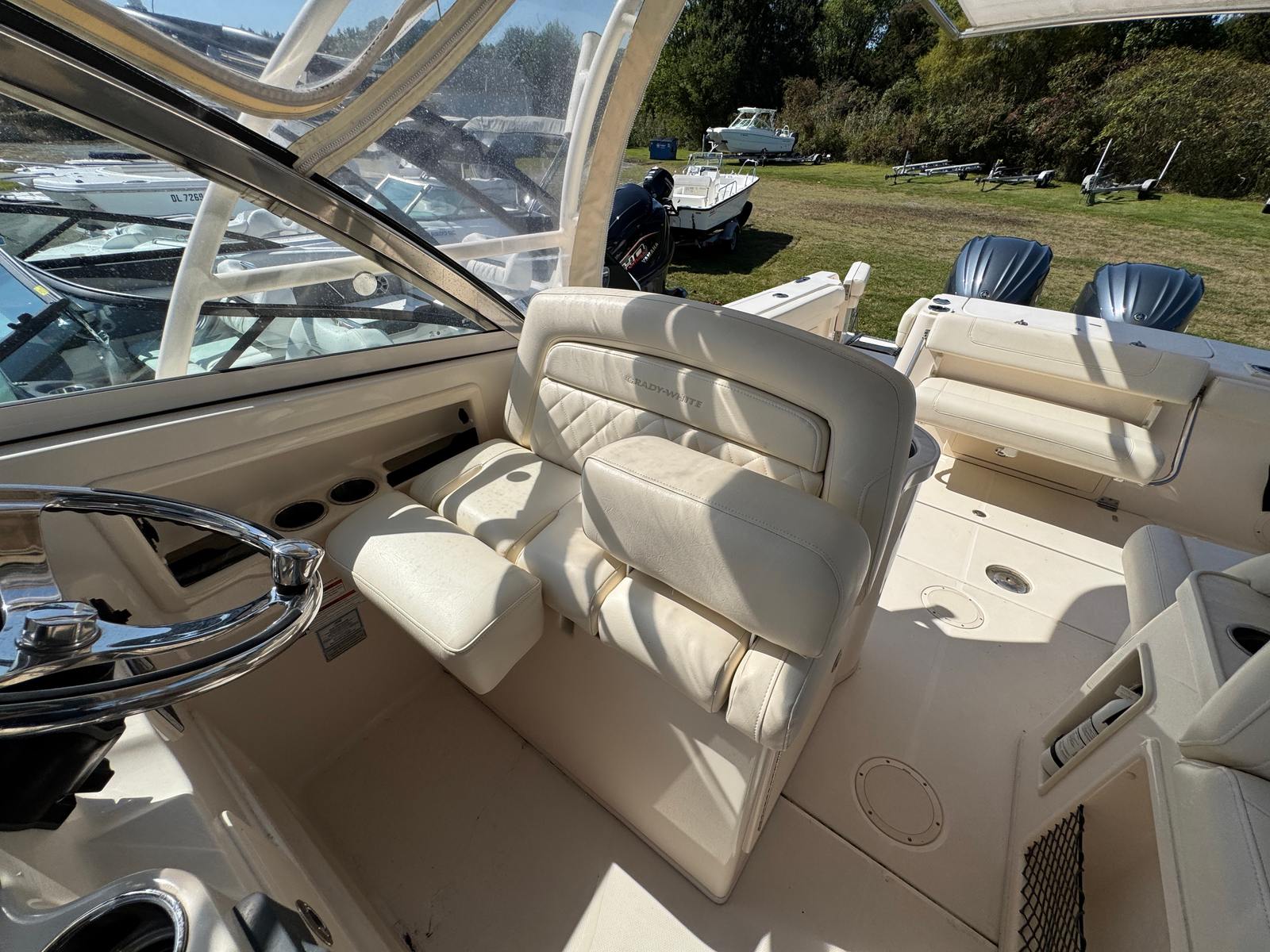 Powering the Grady-White Freedom 307 are two robust engines, delivering a combined 600 horsepower. With 589 engine hours, these motors have proven their reliability and are ready for many more adventures. The dual engine setup ensures smooth acceleration, impressive top speeds, and effortless handling, whether you’re cruising along the coast or heading offshore for a day of fishing. The Freedom 307’s hull design is engineered for stability and efficiency, providing a comfortable ride even in choppy conditions. Experience the thrill of responsive performance and the confidence that comes with owning a Grady-White boat for sale.