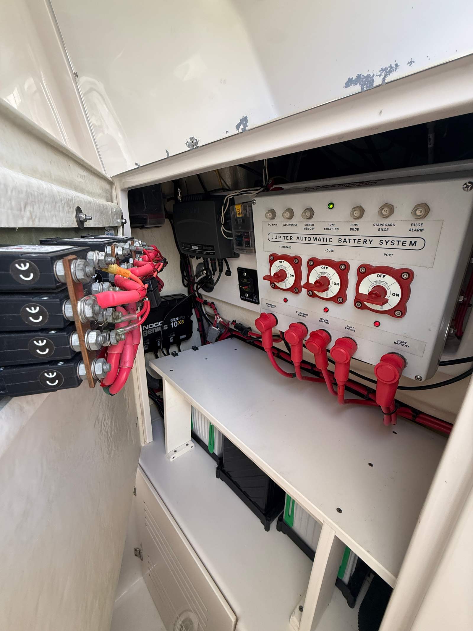 Powering this Jupiter 30 HFS are twin engines delivering a combined 600 horsepower, ensuring exhilarating acceleration and impressive top-end speed. The dual-engine setup provides enhanced reliability and control, making it easy to navigate both calm bays and offshore waters. With just 195 engine hours, these engines have plenty of life left, offering peace of mind and dependable performance for years to come. Whether you’re chasing the next big catch or cruising with friends and family, this Center Console boat for sale delivers the power and agility you need for any adventure.