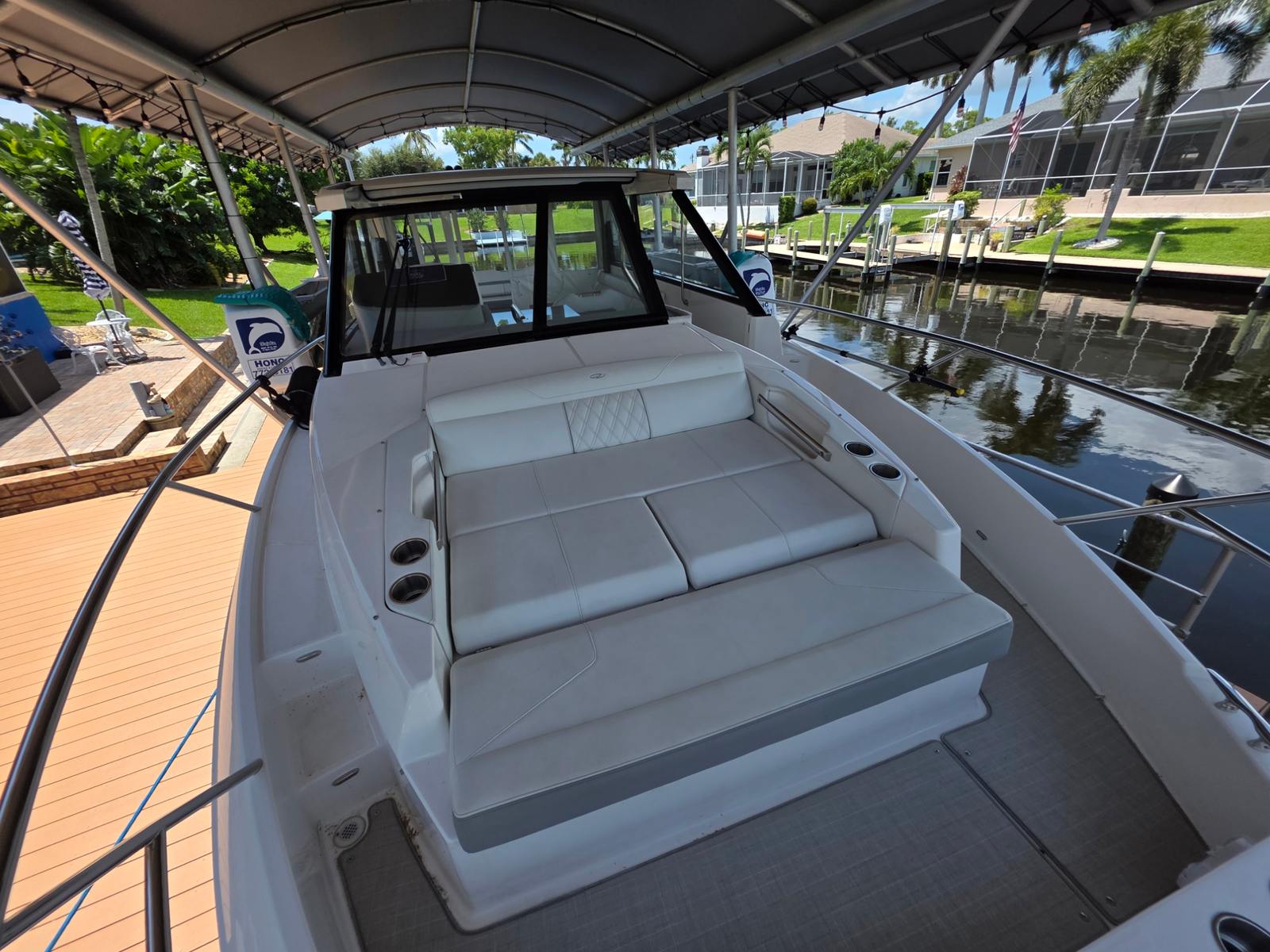 The 2024 Regal 36 XO is powered by twin engines, boasting a combined 900 horsepower. With only 120 engine hours, this yacht is primed for many more seasons of cruising and exploration. The dual-engine setup ensures smooth acceleration, responsive handling, and the ability to reach impressive speeds, whether you’re heading out for a day trip or embarking on a longer voyage. The powerful propulsion system makes docking and maneuvering effortless, providing confidence for both seasoned captains and those new to yachting. Whether you’re navigating open waters or gliding into a marina, the Regal 36 XO delivers a performance that’s both thrilling and dependable.