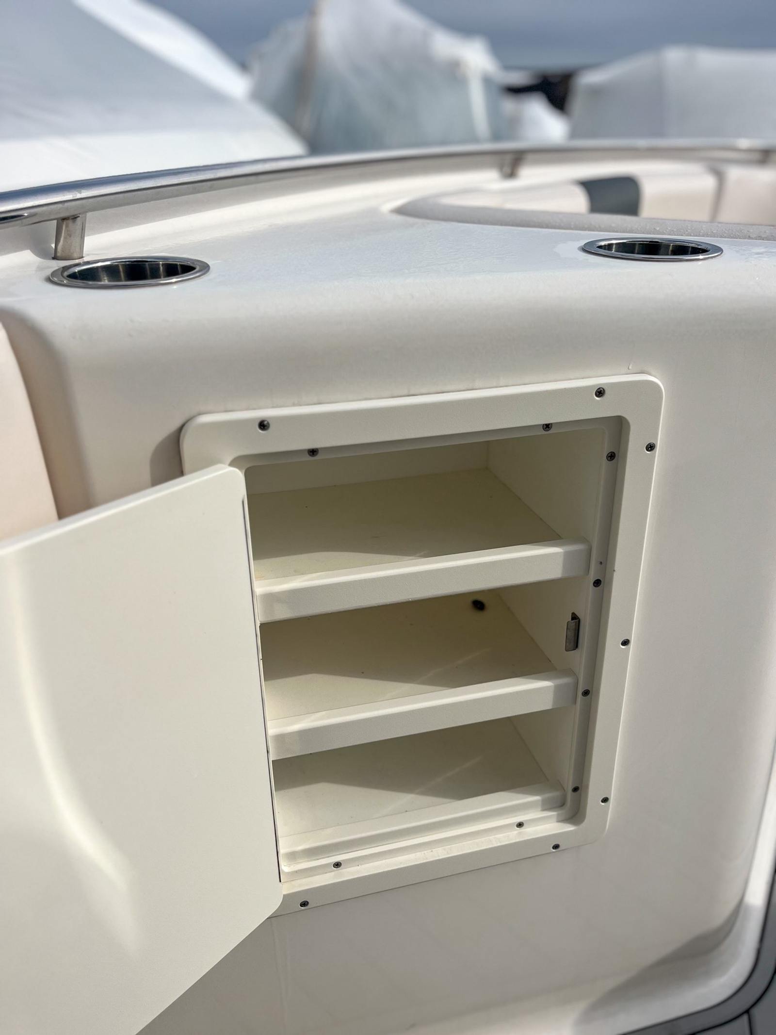 Powered by twin engines delivering a combined 600 horsepower, the Robalo 302 offers exhilarating performance on the water. With only 406 engine hours, these engines promise reliability and plenty of life left for future adventures. The dual-engine setup ensures smooth acceleration, responsive handling, and the confidence to tackle a variety of water conditions. Whether you are cruising along the coastline or heading offshore for a day of fishing, this center console boat for sale provides the power and agility you need for an exceptional boating experience.