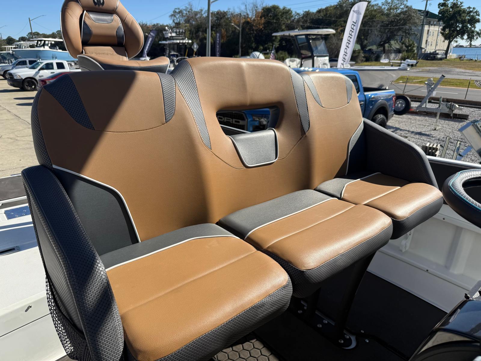 The 2021 Scarab 255 Center Console is thoughtfully designed with features that enhance both functionality and comfort. Its center console layout maximizes deck space, allowing for easy movement and unobstructed access to all areas of the boat. The open design is perfect for anglers who need room to cast and maneuver, as well as families and friends who want to relax and socialize on the water.The Scarab 255’s helm is ergonomically arranged, providing intuitive control and excellent visibility. The spacious bow and aft seating areas offer plenty of room for passengers to stretch out and enjoy the ride. Ample storage compartments are integrated throughout the boat, ensuring that gear, safety equipment, and personal items are always within reach yet neatly stowed away.