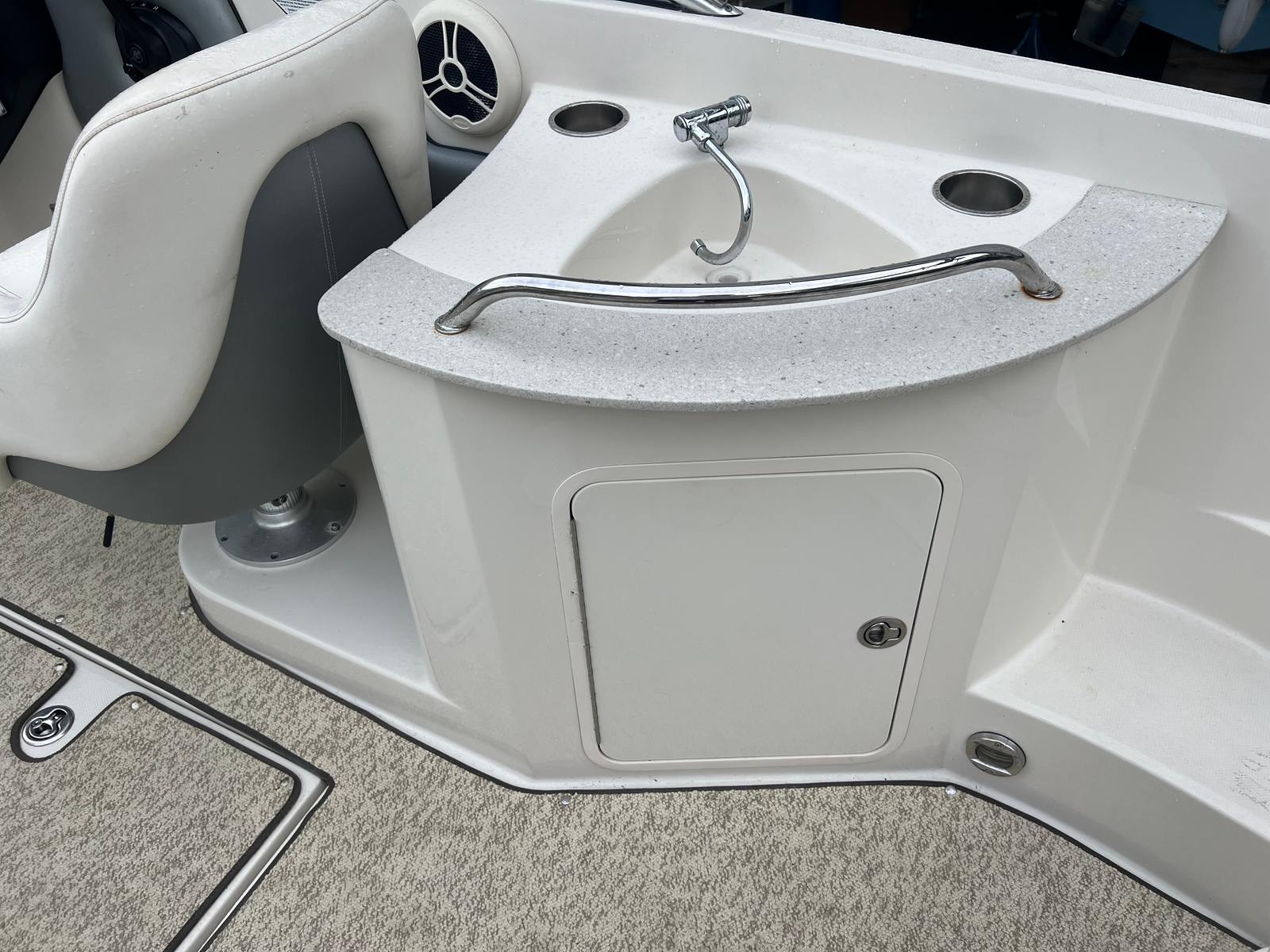 The 2008 Sea Ray 260 Sundeck is a versatile family bowrider for day-cruising, watersports, and comfortable cruising with a deep hull and ample seating for up to 12 people. It is powered by a MerCruiser 350 MAG (300 HP) with a Bravo 3 dual-prop outdrive, offering strong performance in both rough and calm water. The boat is equipped with a full head, wet bar, and large storage areas, making it a well-rounded choice for a day out on the water.